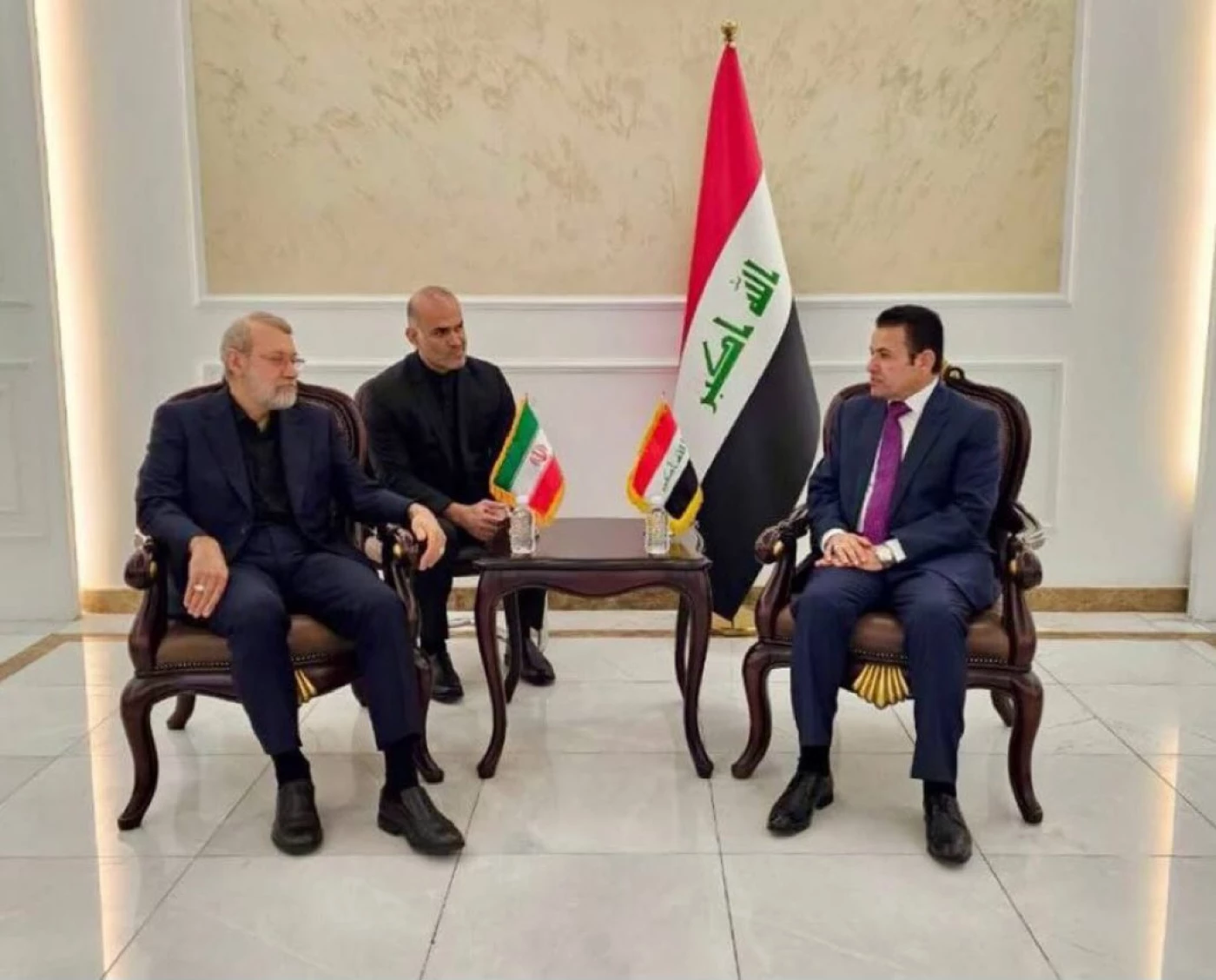 وكان رئيس مجلس الوزراء، محمد شياع السوداني، استقبل علي لاريجاني والوفد المرافق له، كما رعى “توقيع مذكرة تفاهم أمنية مشتركة بين مستشار الأمن القومي العراقي، ولاريجاني تتعلق بالتنسيق الأمني للحدود المشتركة بين البلدين”.
